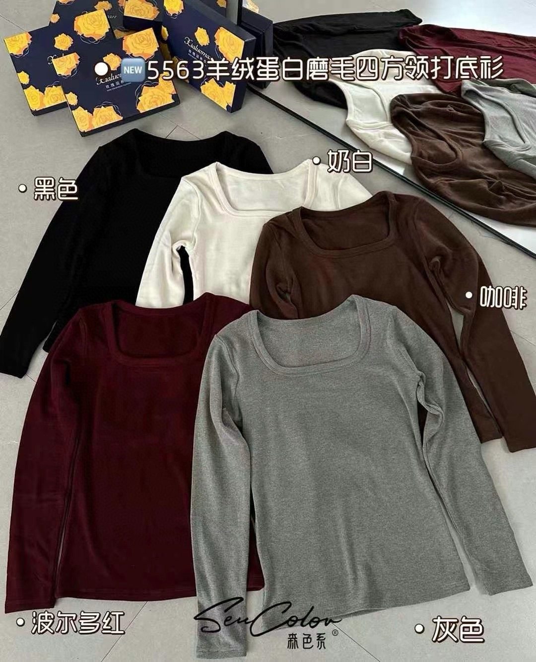 黛美芮5563冬季羊绒蛋白方领打底衫女士新款修身内搭上衣长袖t恤