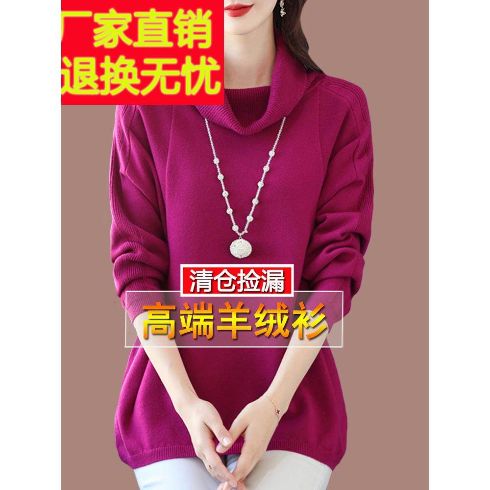 濮院精品市胖mm高领毛衣女冬大码宽松洋气胖女人堆堆领打底羊绒衫
