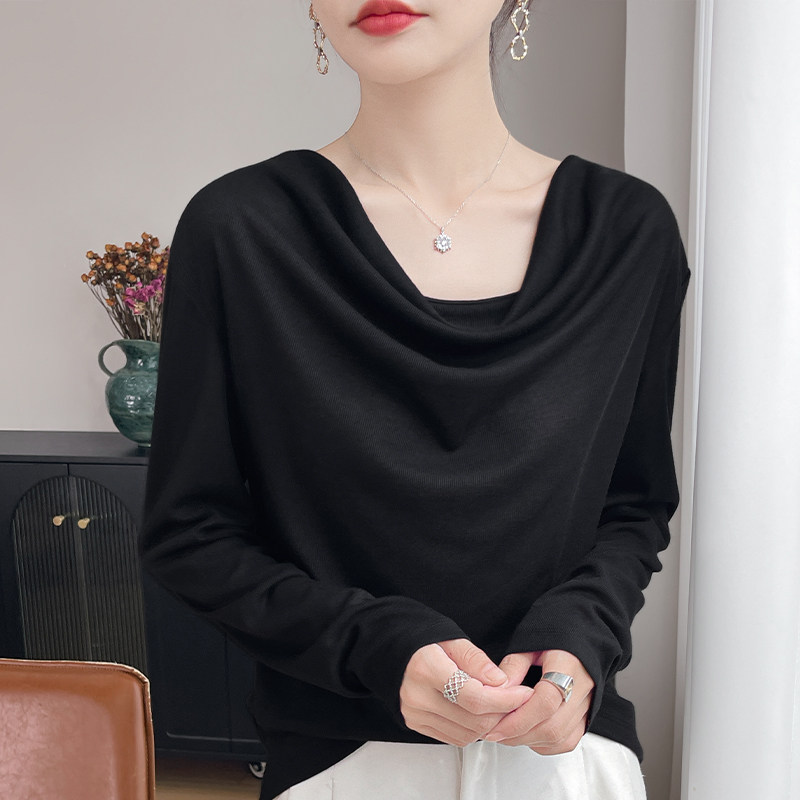 绝美法式慵懒荡领女人味气质长袖t恤针织衫收腰温柔气质内搭上衣