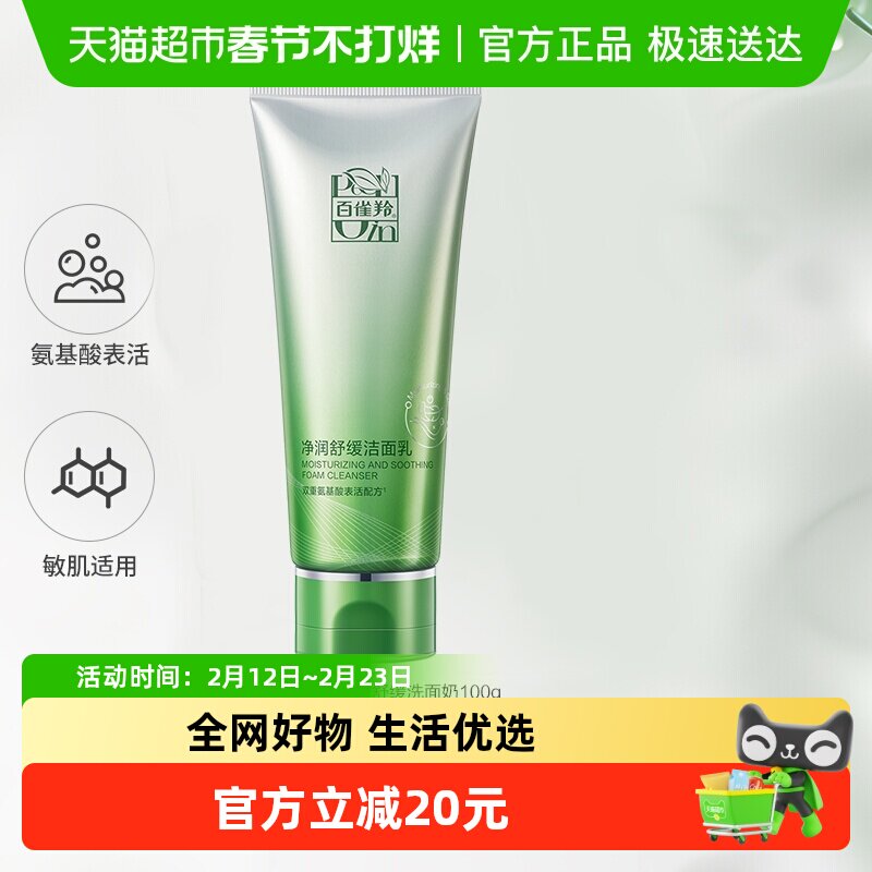 【下拉享优惠】百雀羚氨基酸舒缓洗面奶男女通用泡沫洁面乳深层清