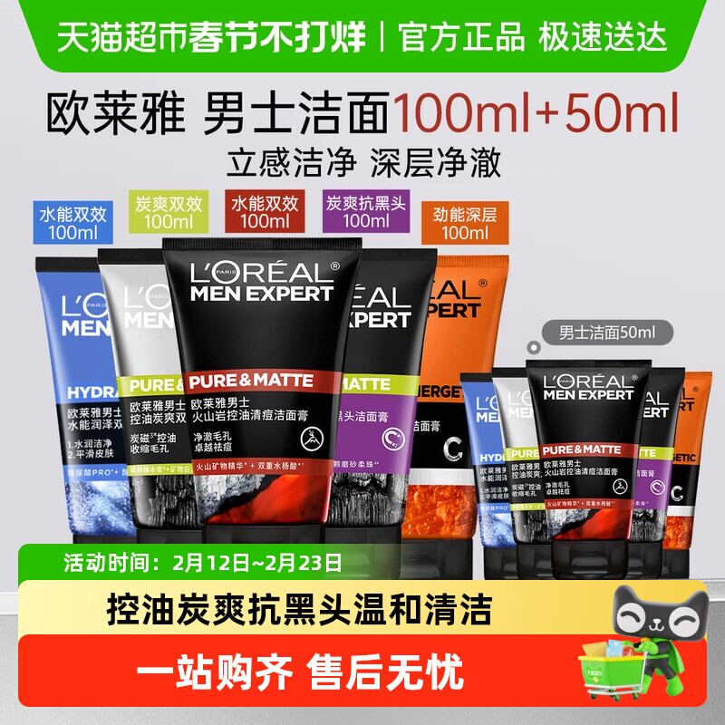 欧莱雅男士洗面奶火山岩泥控油祛痘去黑头洁面乳深层清洁50ml