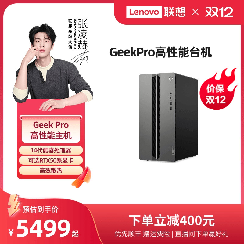 【张凌赫推荐】联想电脑台式电脑GeekPro高性能主机14代英特尔酷睿家用台式机游戏设计师台式机电脑 官方