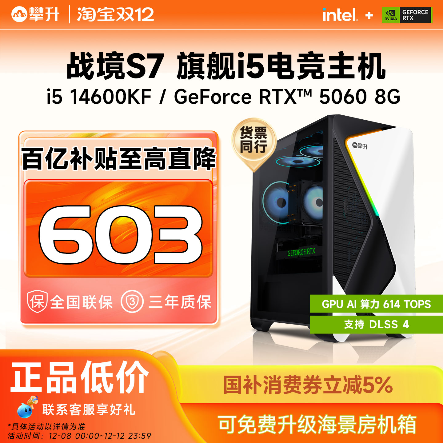 【百亿+国补5%】攀升电脑主机战境S7 i5 12400F/14600KF/RTX5060游戏电脑主机办公台式机diy组装电脑整机全套