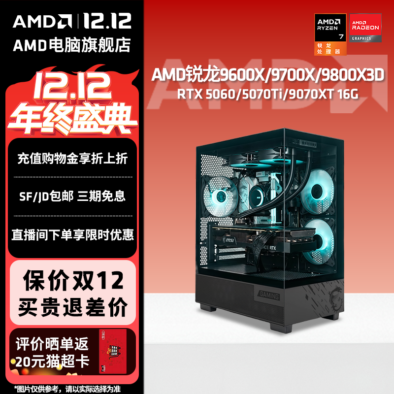 【百亿+消费券】AMD锐龙7 9800X3D/RX9070XT/RTX5070TI/5080千帧电竞三角洲DIY游戏吃鸡主机整机台式电脑套件