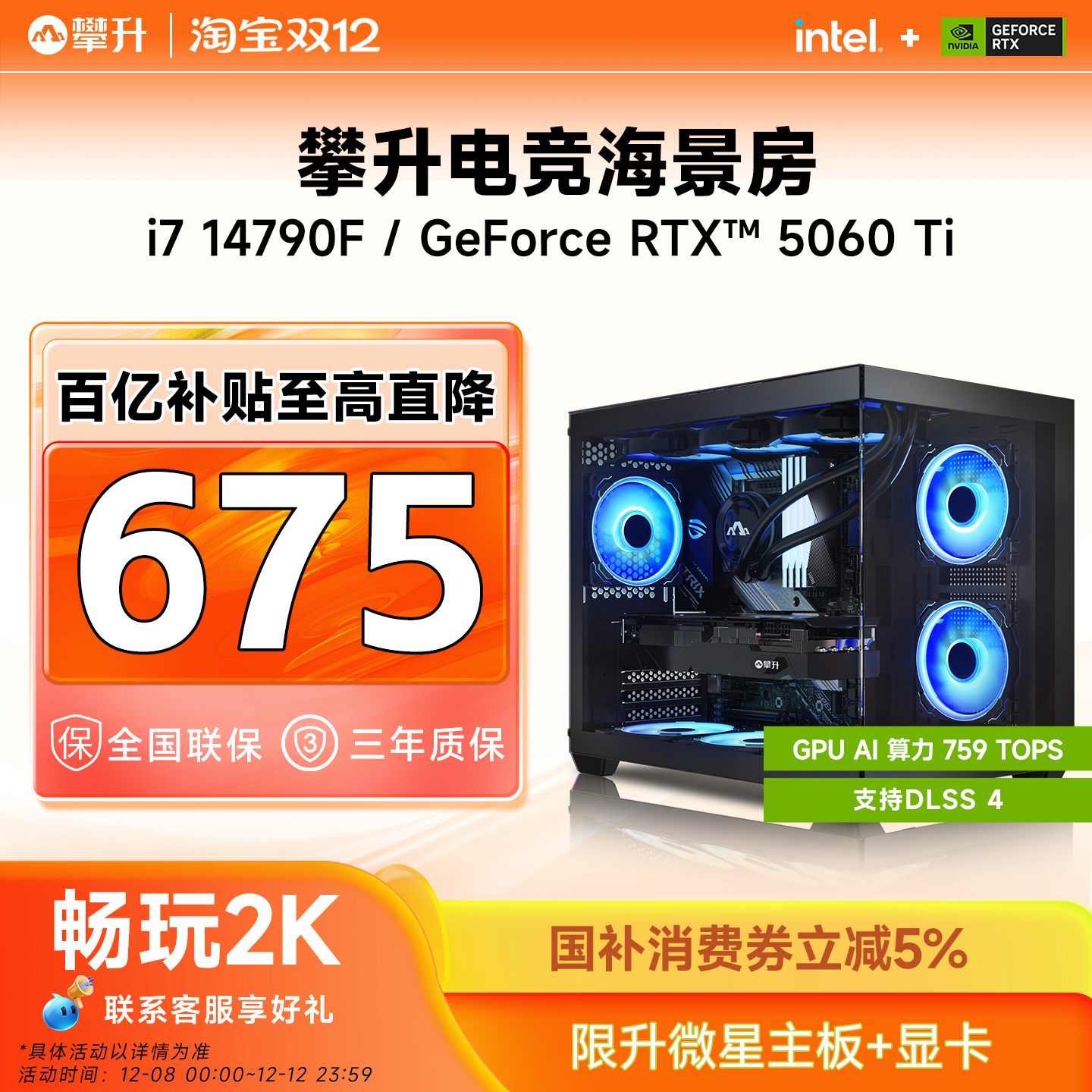 百亿补贴+国补10%攀升游戏主机i7 14700KF/U7 265KF/RTX5070Ti/5080三角洲台式机电脑主机整机DIY电竞组装机