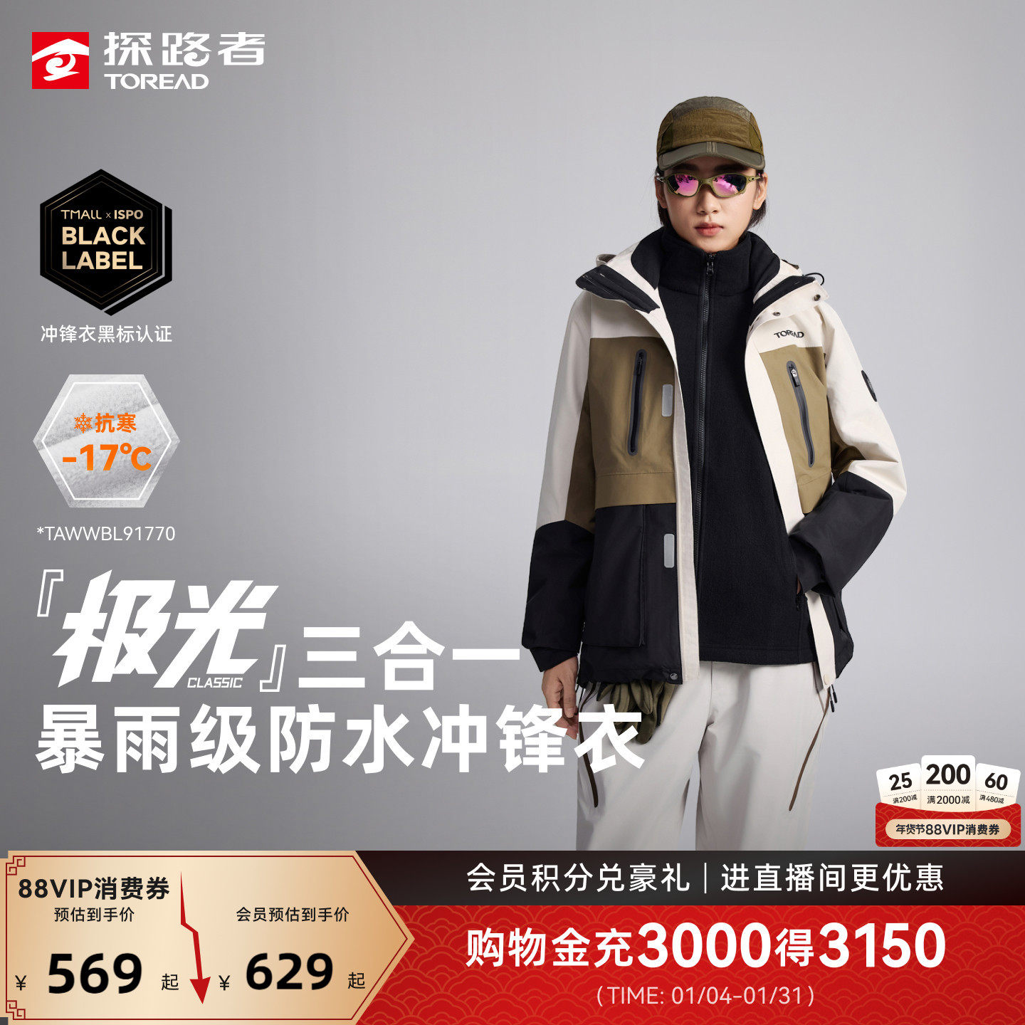 【极光Classic】探路者冲锋衣女冬季户外徒步登山三合一外套男