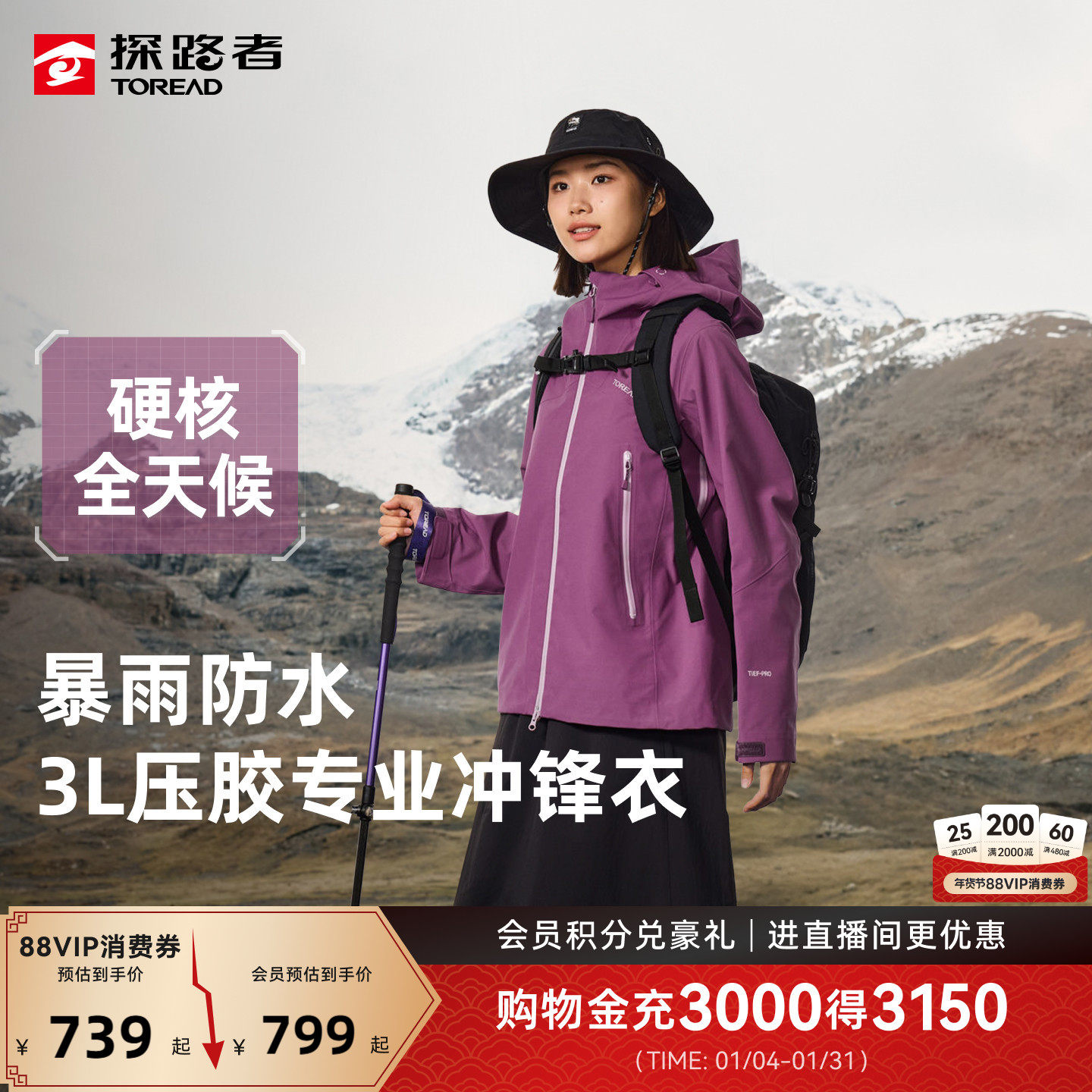 探路者3L单层硬壳冲锋衣新款徒步登山防风防水专业户外外套男女