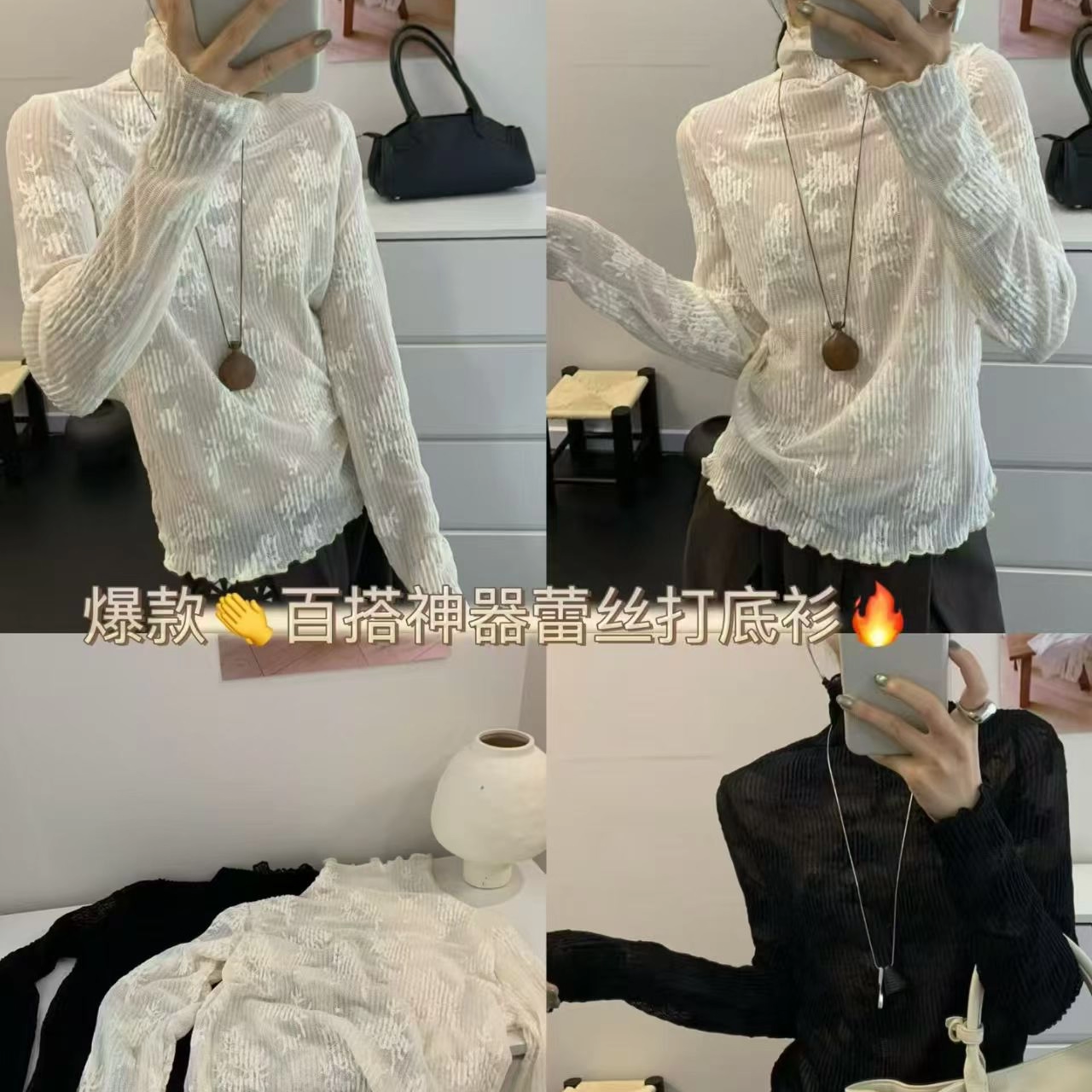2025年秋新款百搭洋气网纱小衫女半高领蕾丝打底衫长袖毛衣内搭纱
