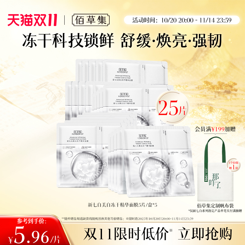 百雀羚八杯水面膜草本芦荟滋润补水莹润保湿贴片面膜女旗舰店正品