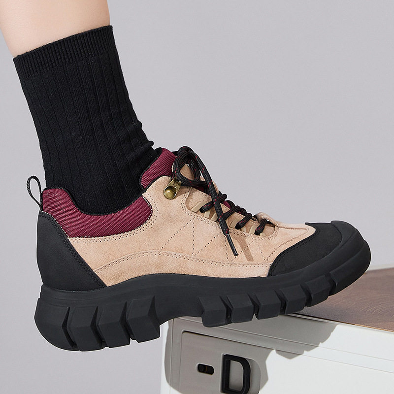 2590-1旅游户外工装登山鞋女低帮厚底内增高防滑徒步休闲运动女鞋