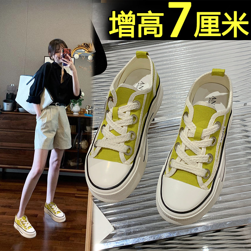环球内增高低帮帆布鞋6厘米春夏休闲2025新款厚底小个子松糕女鞋