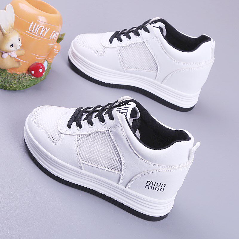 松糕厚底女鞋2025新款低帮网纱透气休闲女网鞋内增高轻便小白鞋女