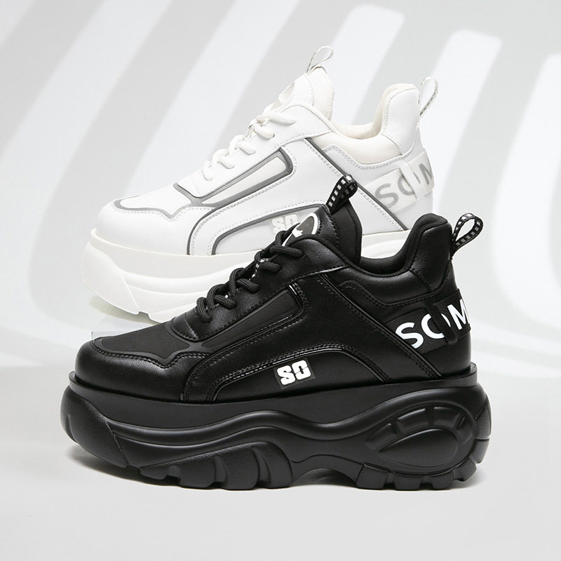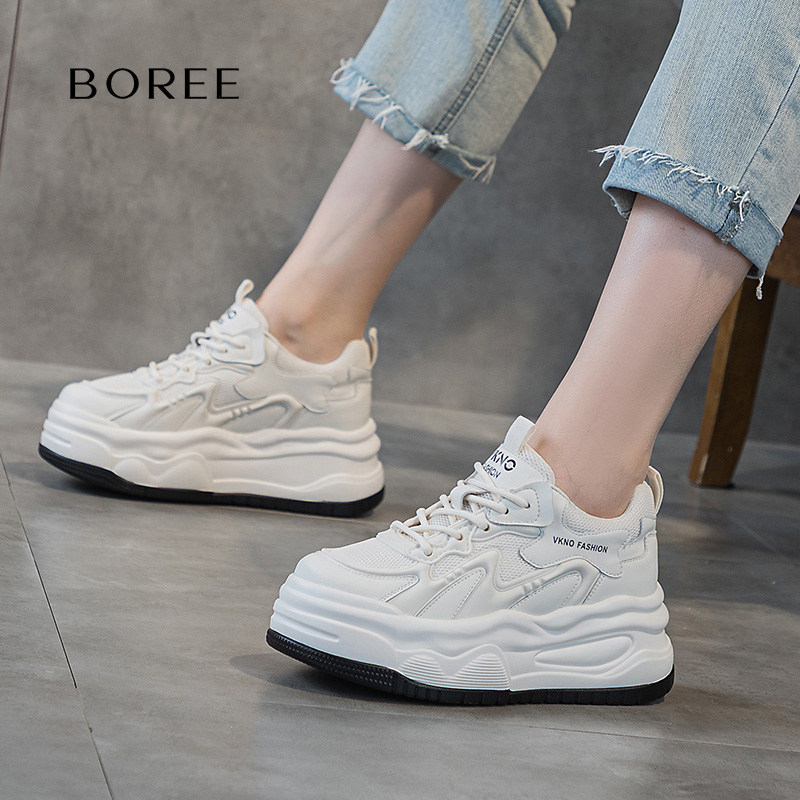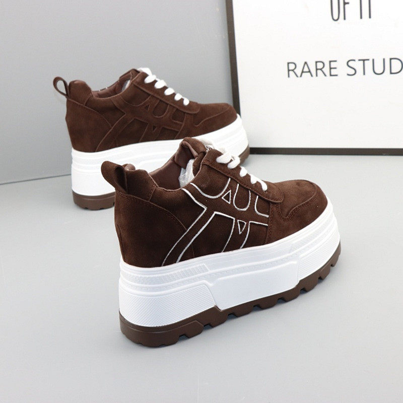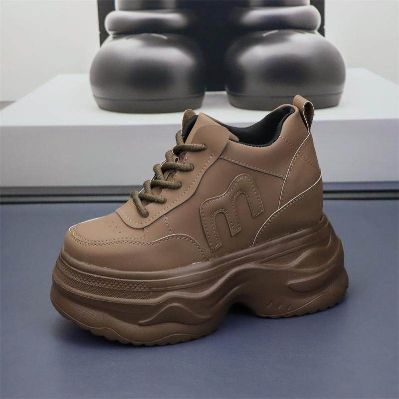 10CM百搭松糕厚底运动系带低帮靴裸靴隐形内增高真皮休闲老爹女鞋