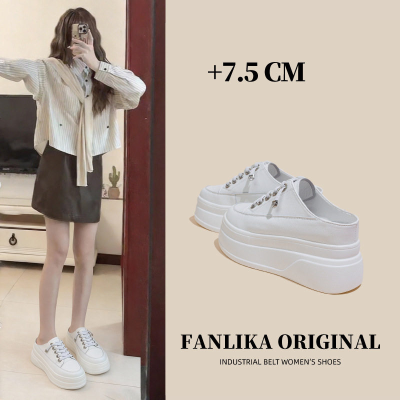 2026新款半托小白鞋女内增高厚底休闲低帮春夏百搭时尚一脚蹬鞋子