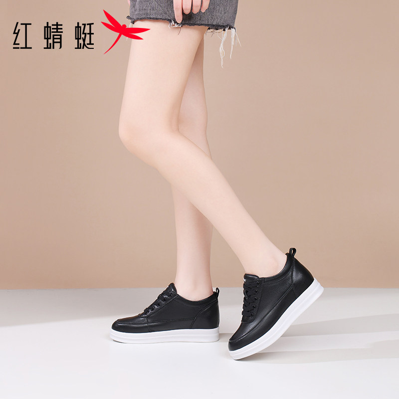 红蜻蜓女鞋板鞋低帮系带百搭休闲鞋女士牛皮透气内增高软底运动鞋