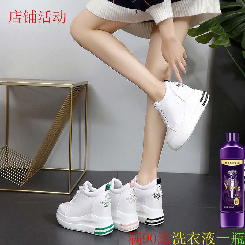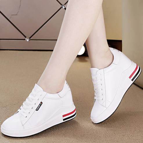 香港真皮低帮鞋女坡跟百搭内增高7CM女鞋白色休闲鞋运动鞋小白鞋