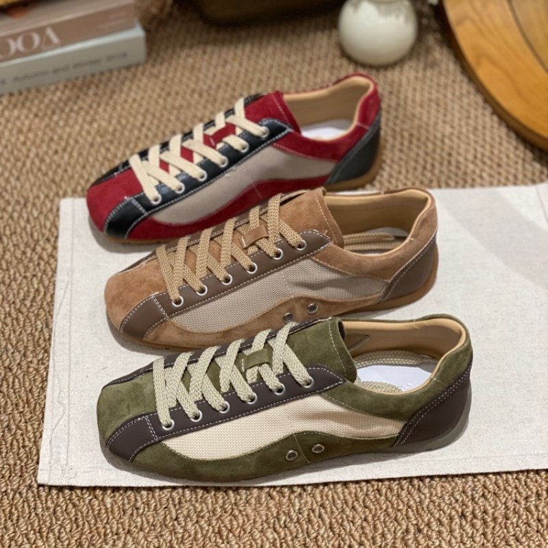 复古拼色德训鞋女2026春季新款系带低帮圆头内增高休闲运动鞋防滑