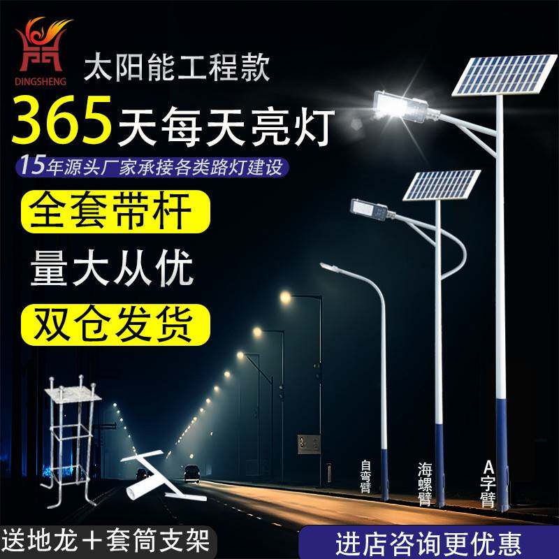 新款太阳能路灯带杆全套6米高杆灯农村道路大功率LED照明灯户外灯
