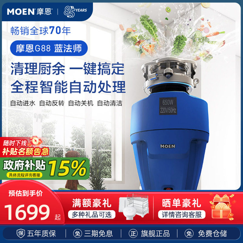 [美国原装进口]爱适易E150厨房食物垃圾处理器家用水槽厨余粉碎机