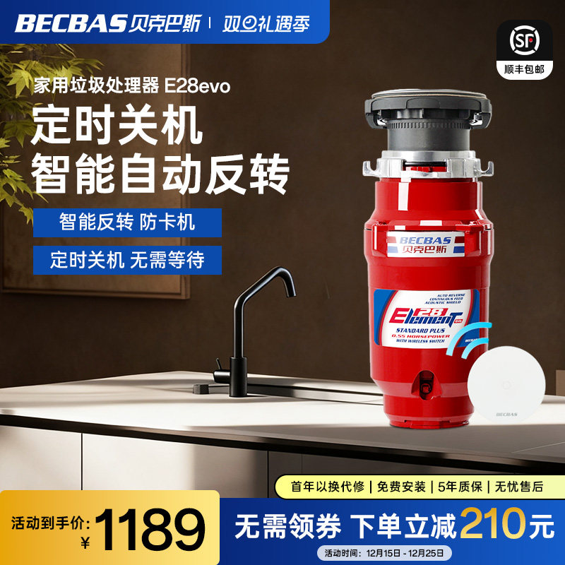 贝克巴斯E28evo家用厨房食物垃圾处理器水槽厨余粉碎机无线开关