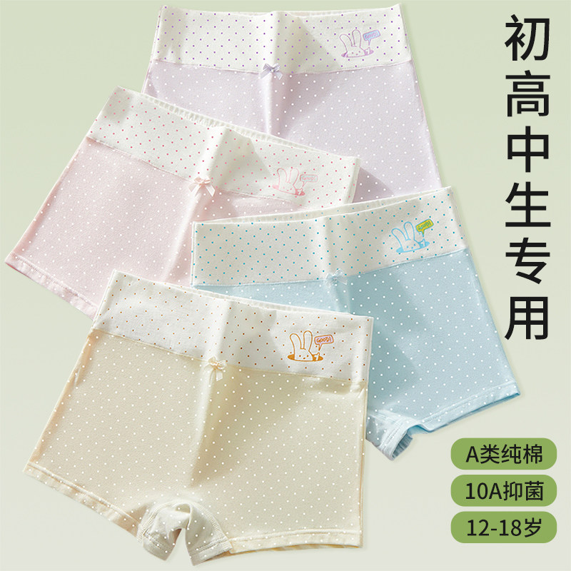 平角内裤女纯棉抗菌薄款透气中学生初中生高中少女发育期四角短裤