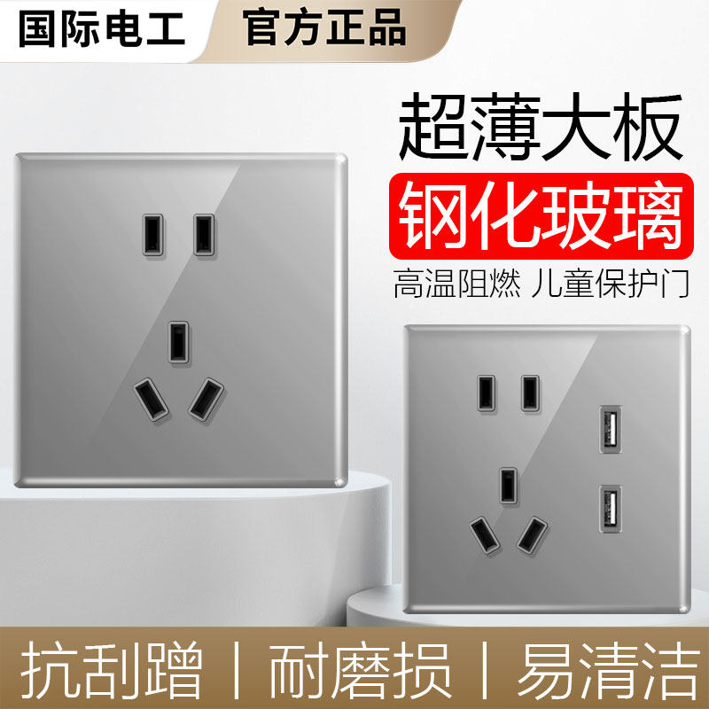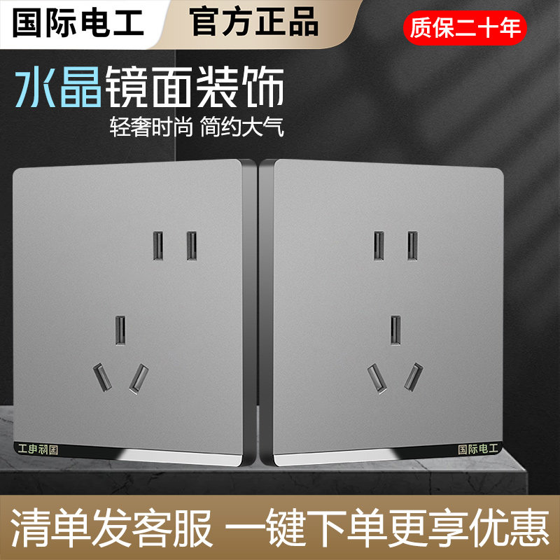 国际电工86型家用墙壁电源插座面板灰色多孔USB暗装5五孔插座家用