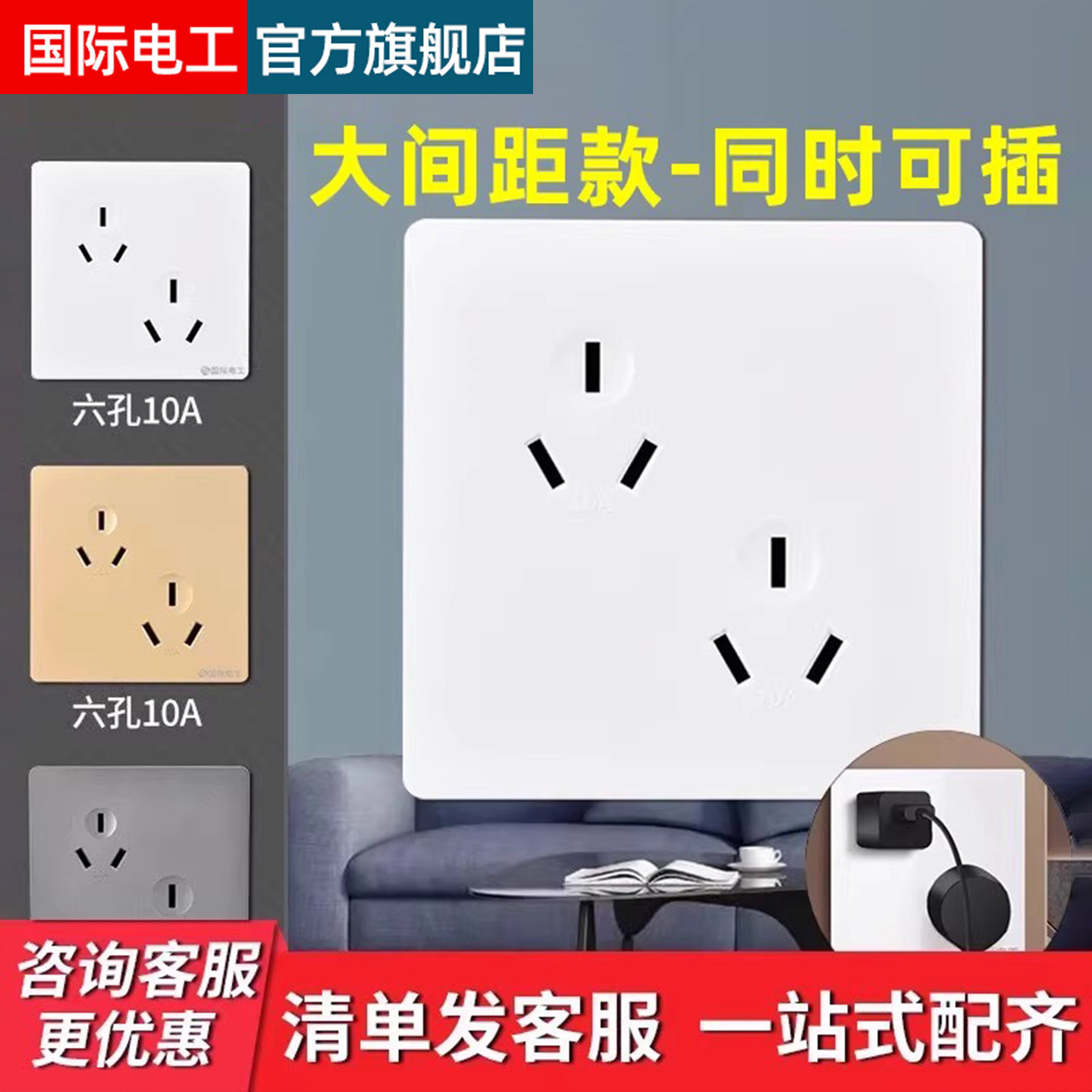国际电工86型多功能开关插座一开8孔两开十孔多孔10a电源插座面板