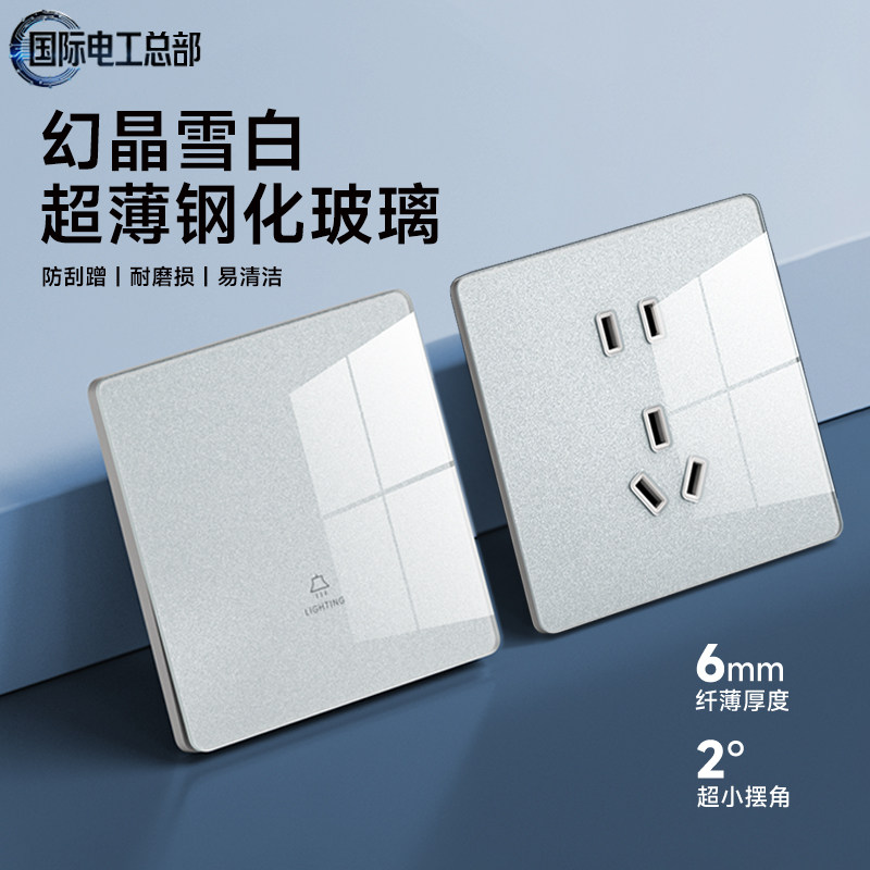 国际电工86明装超薄开关插座面板家用墙壁明线盒电源一开五孔单控