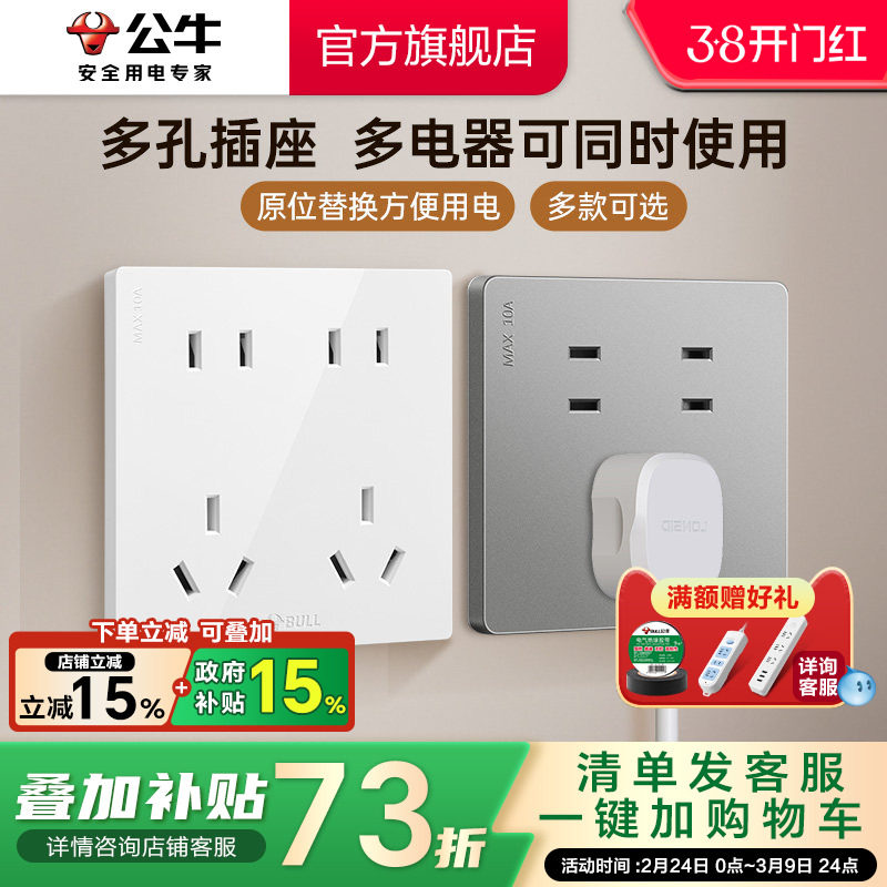 公牛开关电源插座面板上墙家用插板墙壁多孔带电扦插座旗舰店G07