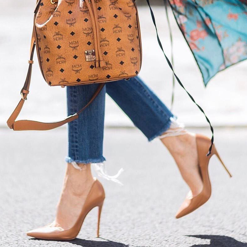 Fermina尖头浅口拼接高跟鞋女细跟中跟小香风通勤单鞋简约工作鞋