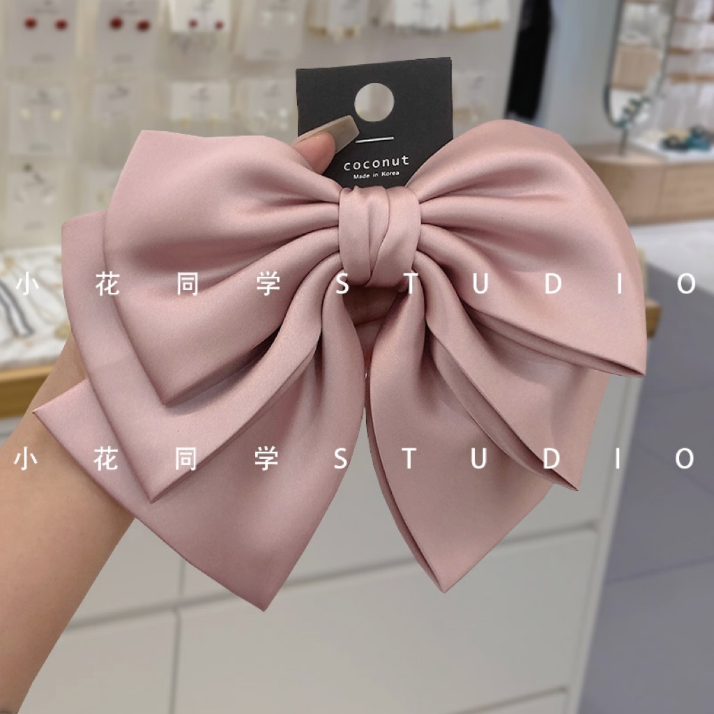 粉色缎面设计感超大蝴蝶结头饰女韩系弹簧夹发夹生日氛围夹子发饰