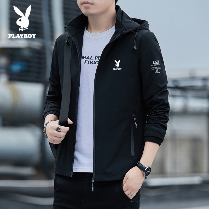 花花公子春秋新款男士夹克加绒可选休闲连帽外套时尚百搭开衫上衣