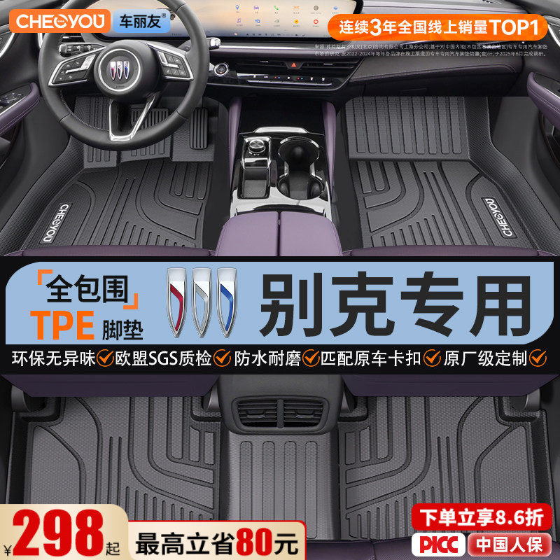 别克新老款英朗GT轻混XT凯越君越君威GS威朗pro全包围TPE汽车脚垫