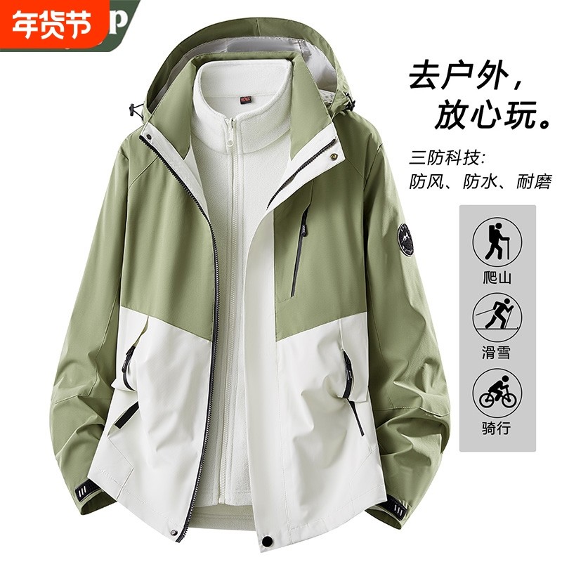 Jeep三合一冲锋衣男防寒服户外防水登山服爸爸新款保暖外套冬男装