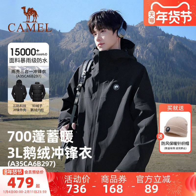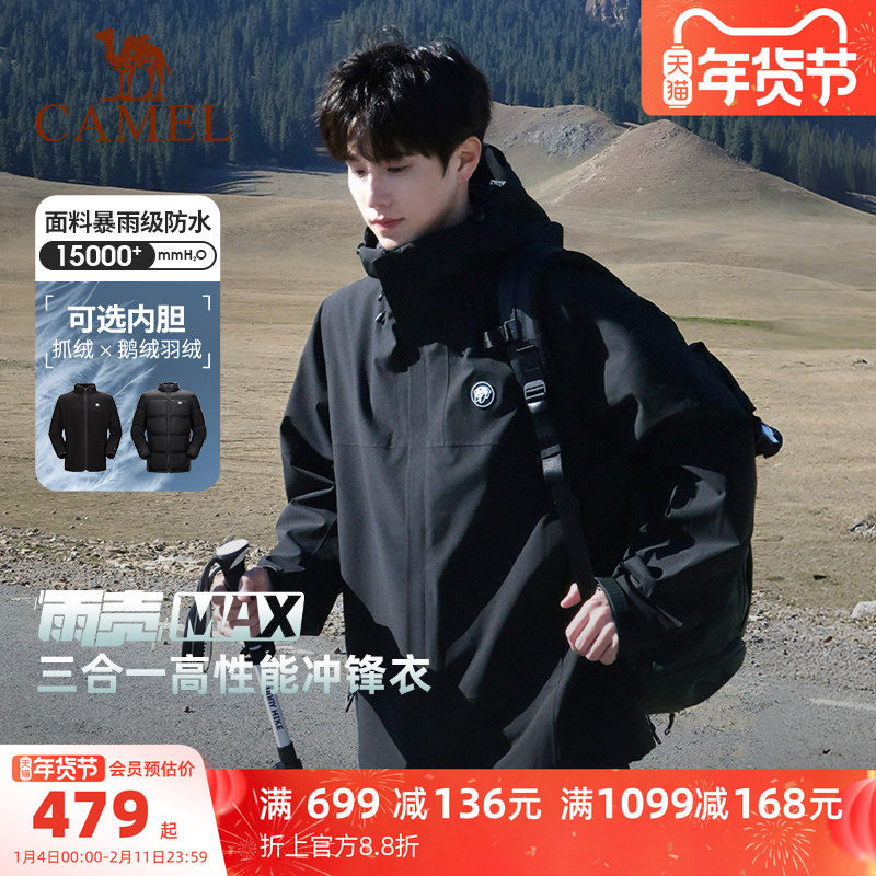 骆驼户外三合一冲锋衣男女2026年秋冬三防保暖鹅绒内胆登山服外套