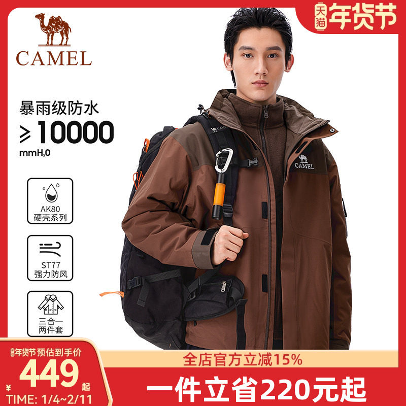 骆驼男装三合一冲锋衣男加厚可拆卸三防登山夹克外套户外防水徒步