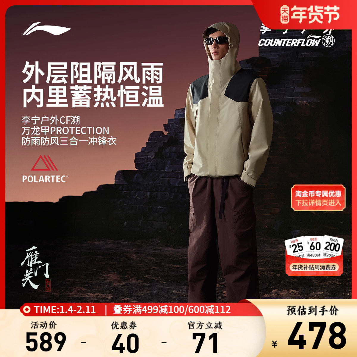 李宁户外CF溯丨万龙甲三合一冲锋衣男女同款冬季新款Polartec内胆