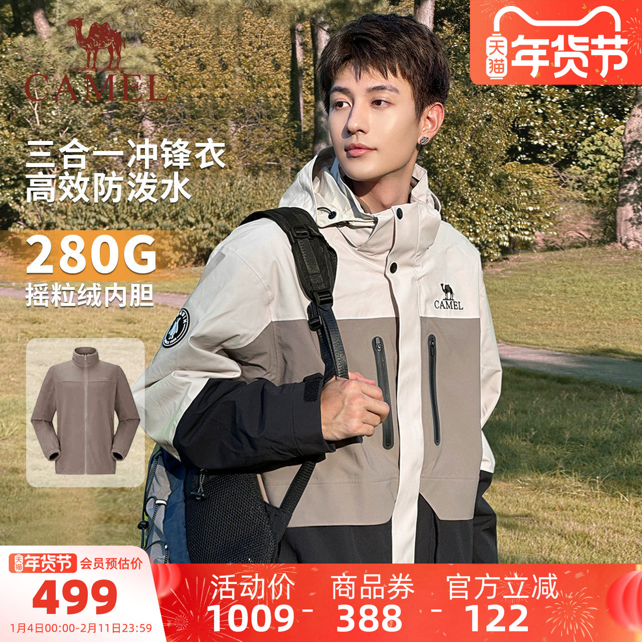骆驼户外三合一冲锋衣男抓绒内胆可拆卸防风防水旅游徒步登山服女