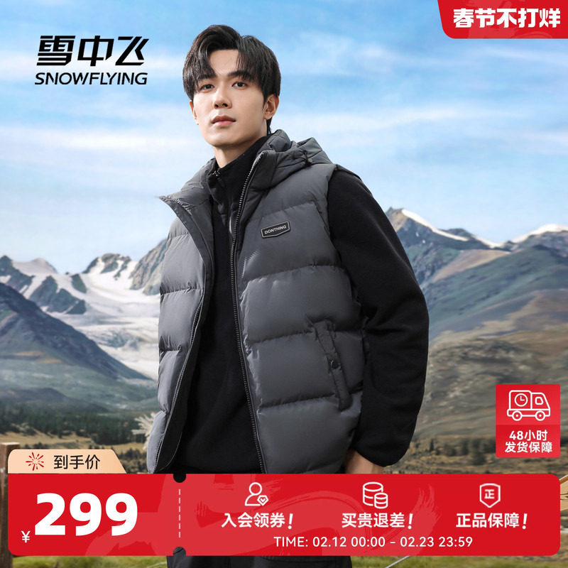 雪中飞2026春新款男士短款羽绒马甲背心可脱卸帽时尚轻暖舒适