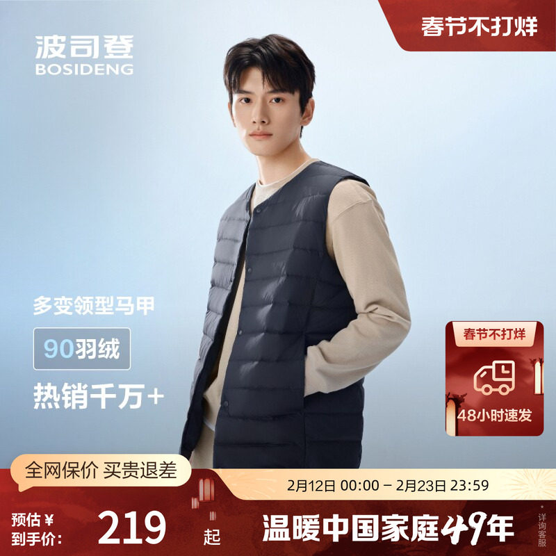 波司登奥莱25秋季新款男短款居家羽绒马甲防钻绒轻薄简约舒适保暖