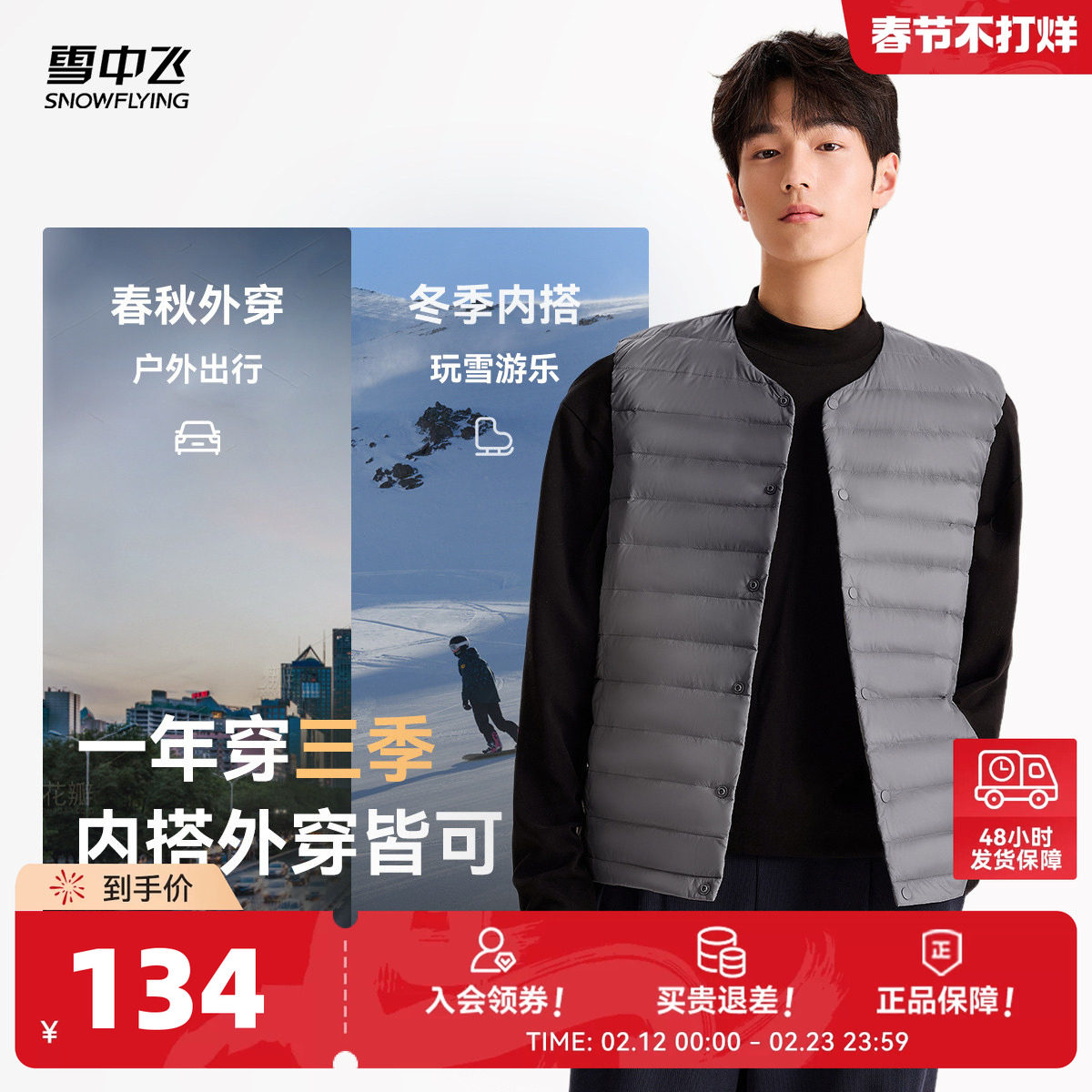 雪中飞2026春新款男士短款圆领羽绒马甲商务运动休闲保暖背心