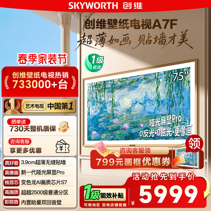 创维壁纸电视A7F 75英寸超薄壁画Mini LED电视机以旧官方换新补贴