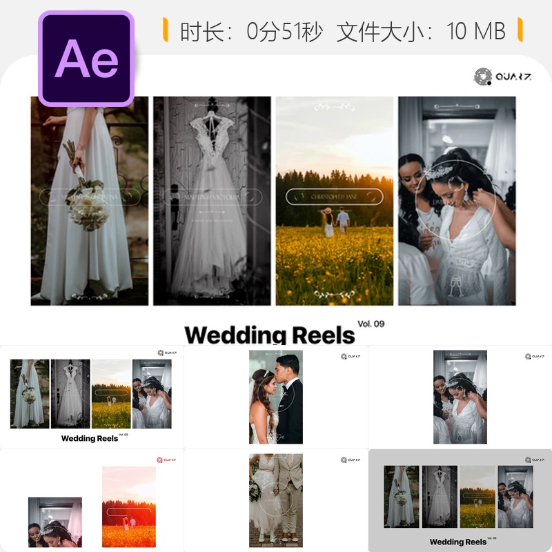 AE模板婚礼开场动画科技感动画社交媒体故事片头AE制作工具包