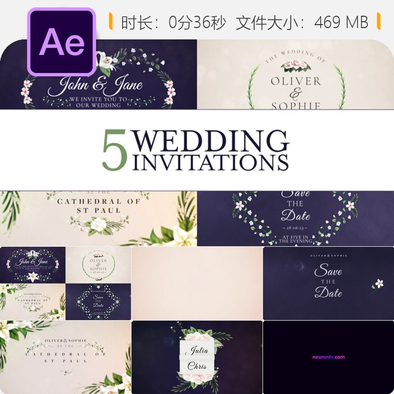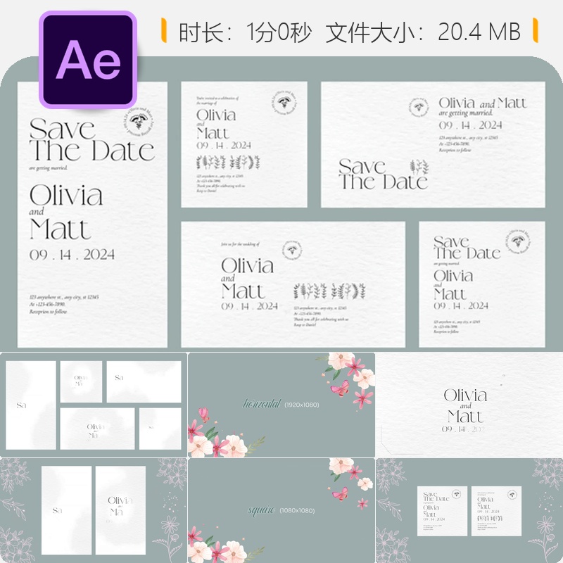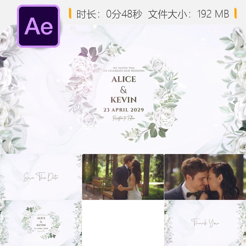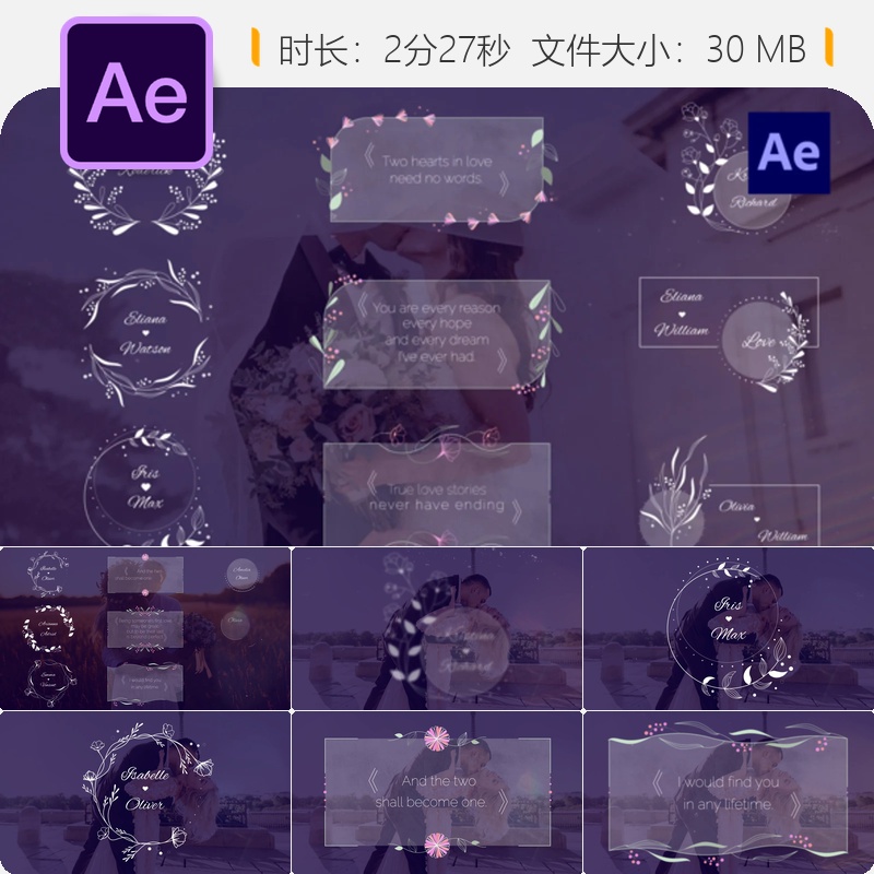 AE模板婚礼开场动画花朵元素图标片头浪漫爱情婚礼邀请函AE制作