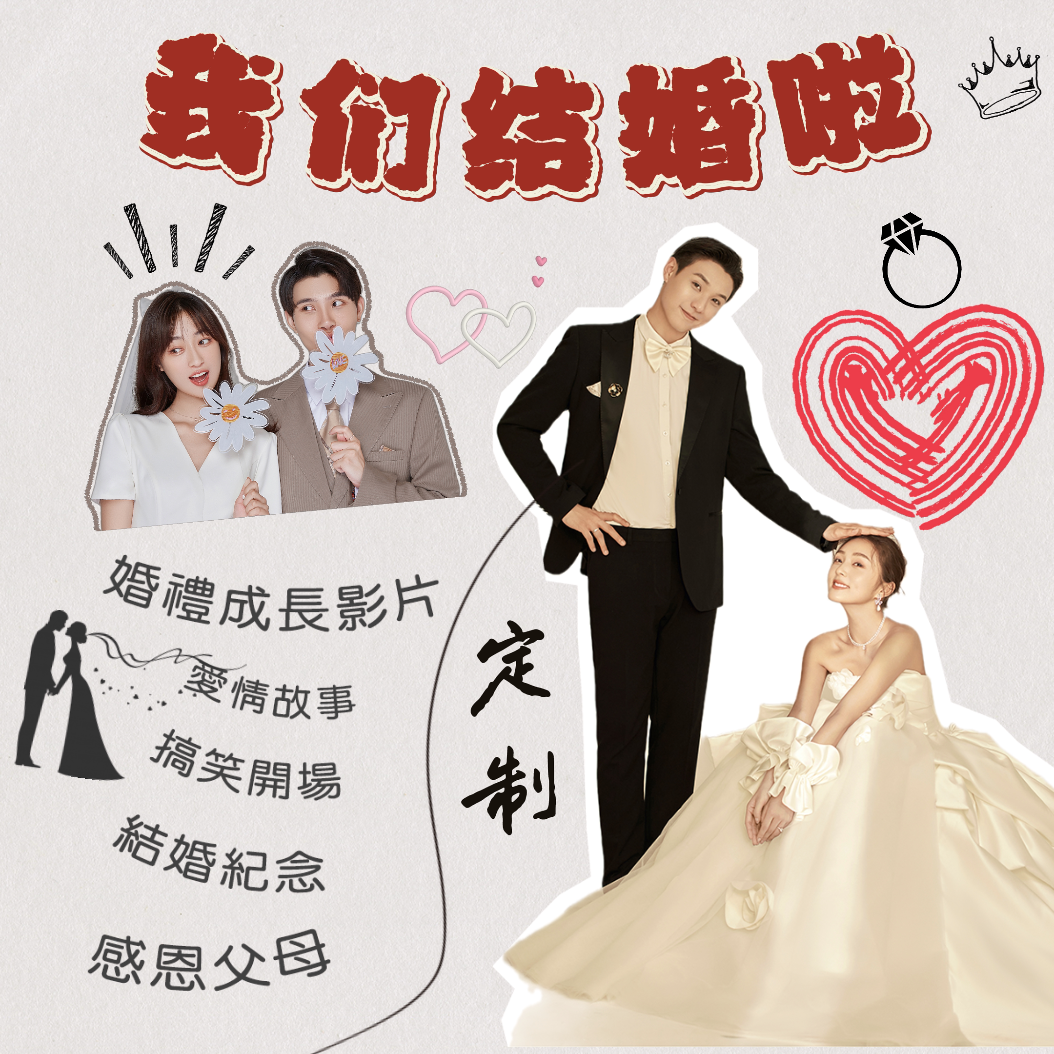 婚礼视频制作 新人成长故事恋爱历程 繁体英文结婚视频定制动画