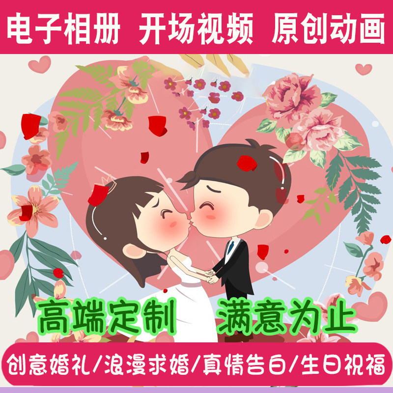 婚礼开场视频动画制作电子相册求婚表白生日手绘flash创意结婚mv