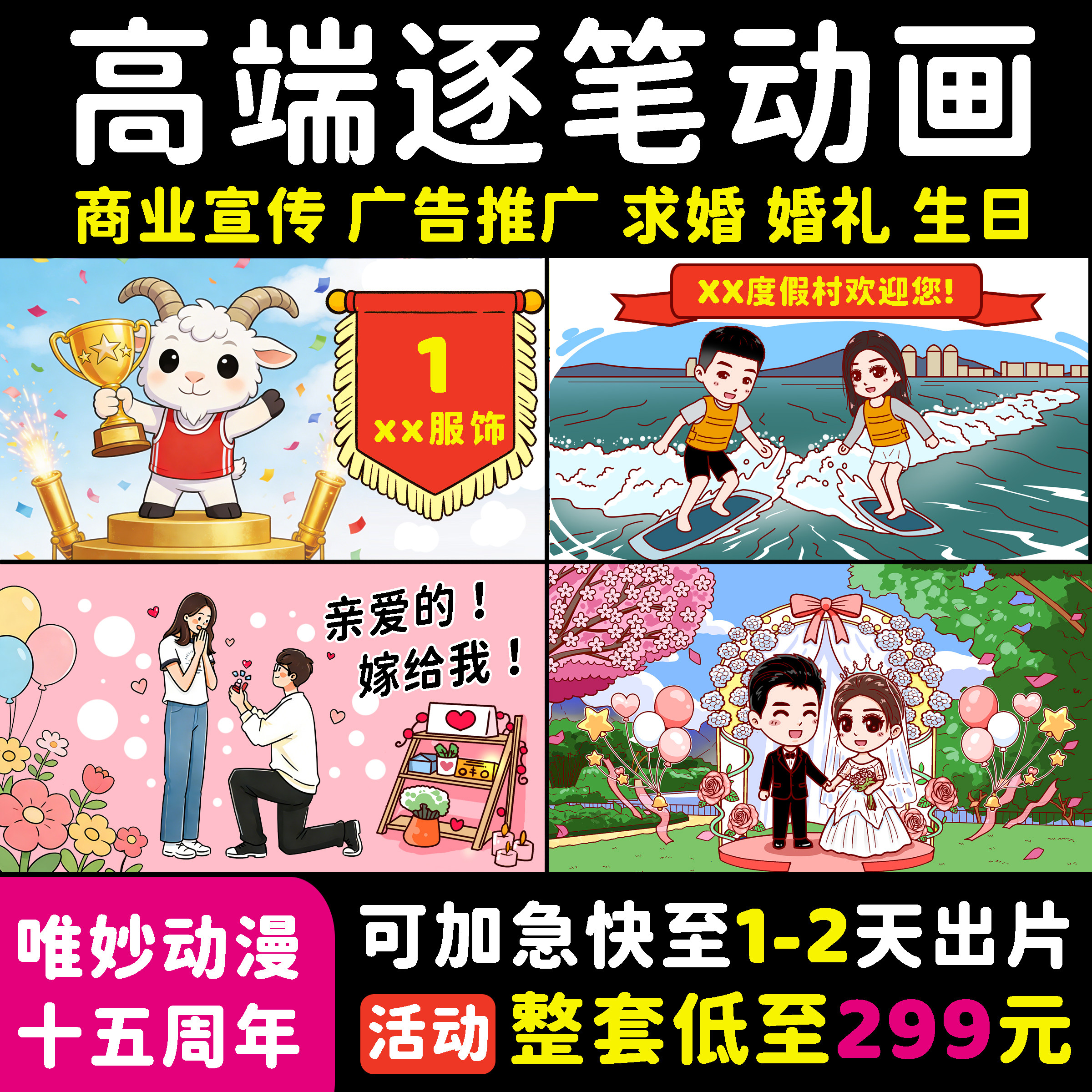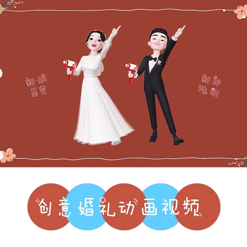 婚礼创意开场 卡通崽崽动画定制小红书视频 婚纱照电子相册MV制作