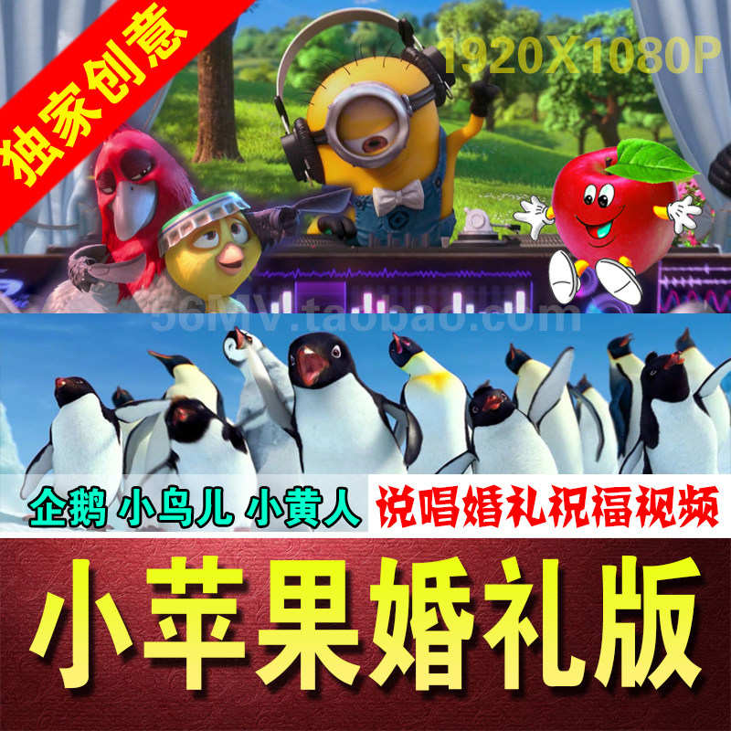 小苹果婚礼开场视频预告片头MV视频制作创意搞笑动画企鹅小黄人版