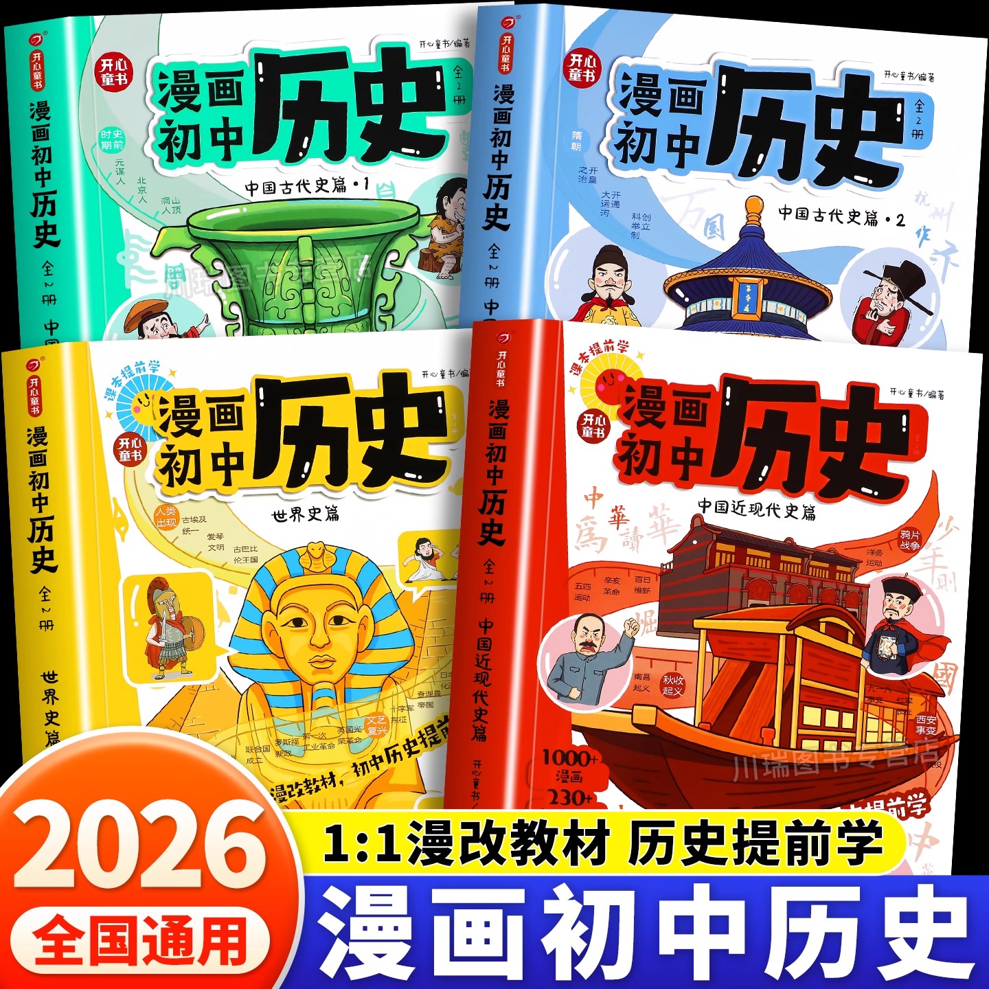 开心2025新版漫画初中历史教材知识点汇总初一二三中国古代史近代史世界历史七八九年级上下册完整版时间轴思维导图必背知识点总结