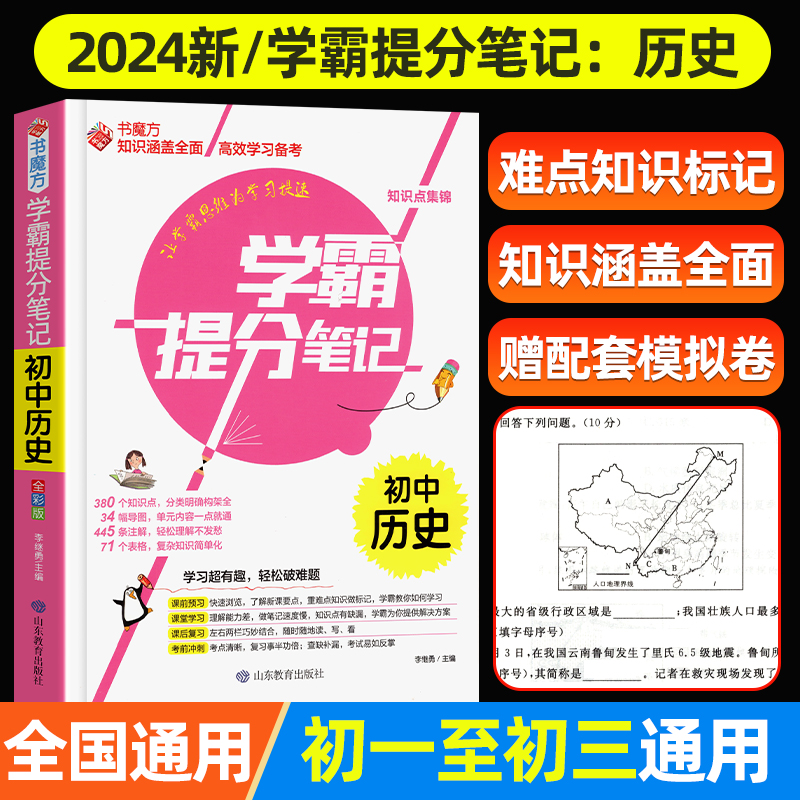 2024版 初中历史学霸提分笔记 初中生历史全彩版 课前预习复习初中通用一二三七八九789中考前冲刺学习复习资料知识点大全